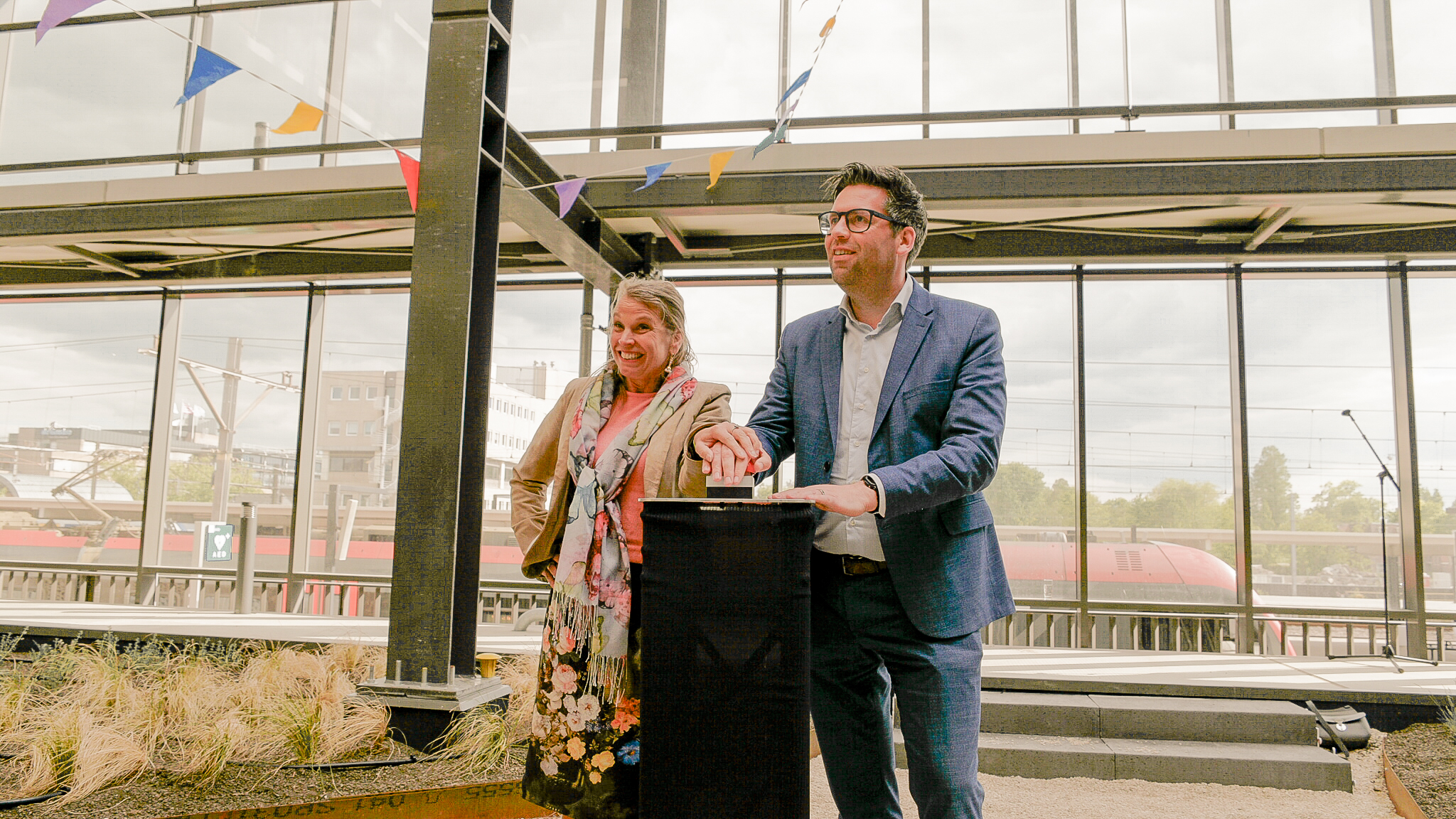 Wethouder Jan Kees Oppelaar sprak van een mijlpaal: “Dit zijn de eerste opgeleverde woningen in de Spoorzone. Daarmee is dit gebouw een echte ‘koploper’. We hebben hiermee in een keer 156 sociale huurwoningen kunnen toevoegen. Dat is heel mooi want de behoefte aan dit type betaalbare woning is enorm.”